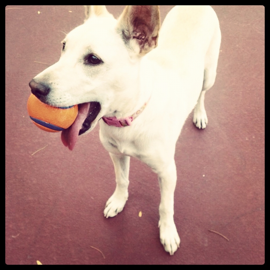 She falls in step beside me, her paws silent on the grass still wet from sprinklers