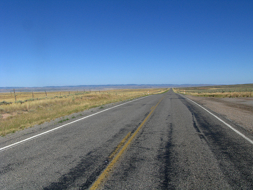 Down the road, there were no cars coming.