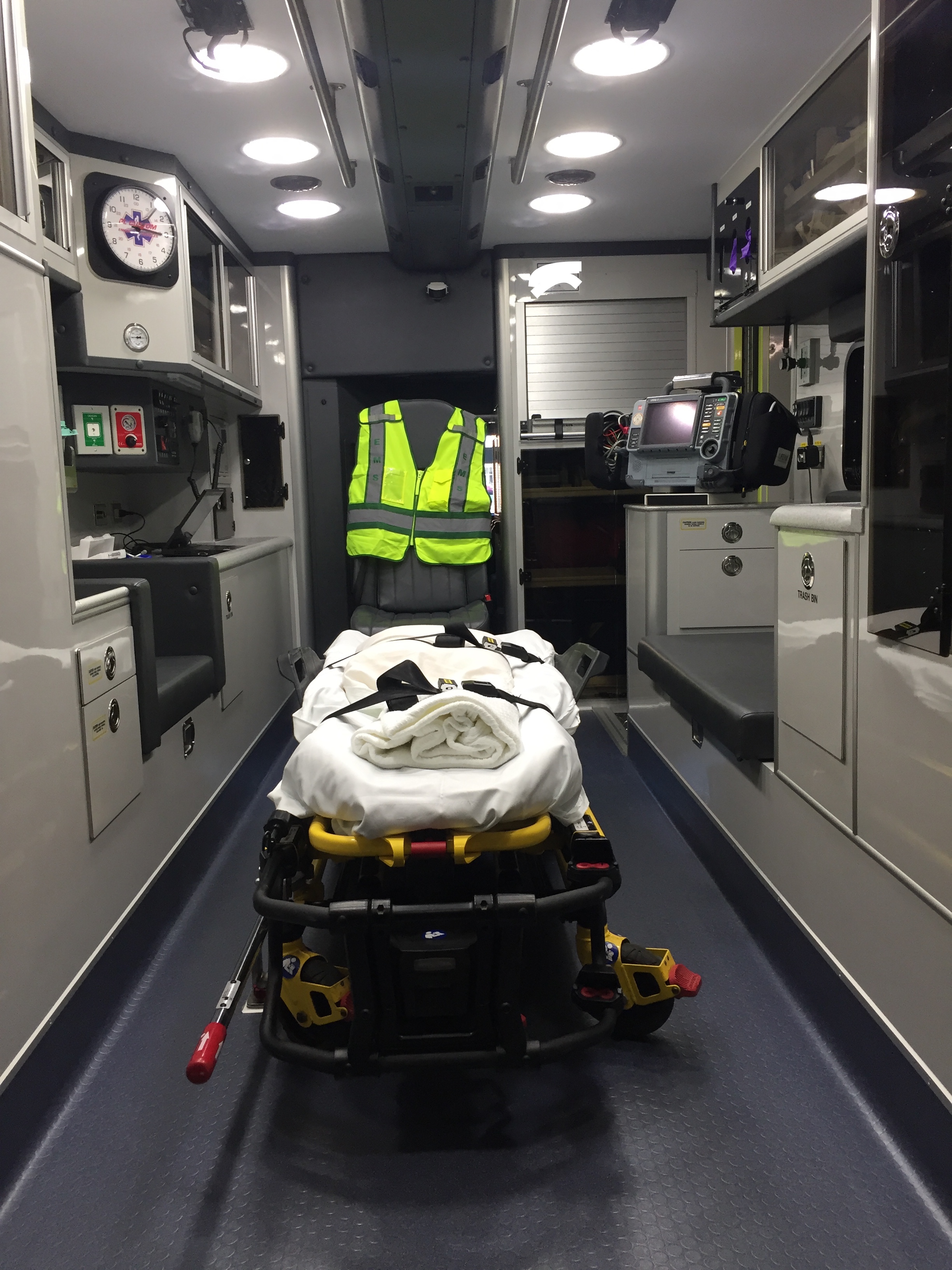 The ambulance is the emergency room these paramedics operate within. The diesel motor purred and hissed, anticipating the foot which would release its demons, allowing it to live, to be free, to snarl down the highway, threatening all others who would stand in its way. The box, a rigid, sterile looking structure. The place where blood flows and IVs penetrate skin, sinking into veins, like pipes into an oil field deep beneath the earth, probing for a thick, dark, viscous fluid to ooze forth from the cavernous depths below.